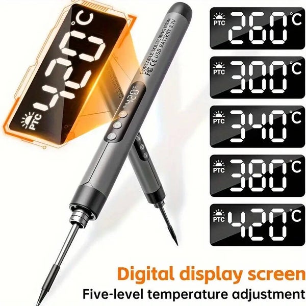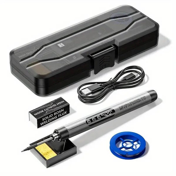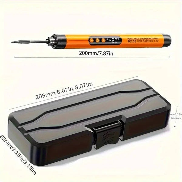 Aufladbares Lötwerkzeug und Ausrüstung mit Digitalanzeige - Lötkolben-Set mit Mehrstufiger Temperaturkontrolle, Tragbare Drahtlose Konstruktion für Elektronikreparatur, Kompatibel mit PCs und Desktops, Keine Batterien Erforderlich, 8W Mini-Lötset mit Lötdraht und Flussmittel